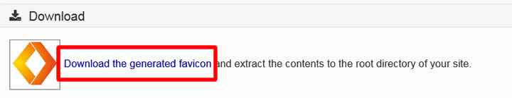 Step 3: Then, click “Create Favicon” button. After Favicon are generated, click “Download the generated favicon” to your local drive.