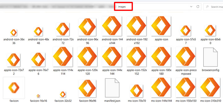 Step 4: Open the downloaded favicon folder, select all favicon images and paste it into /public_html/images folder for HTML document or /public/front/images for Laravel.