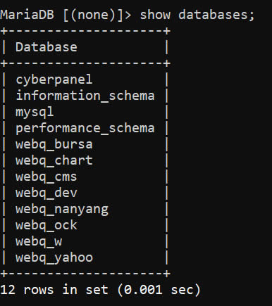 MariaDB [(none)]> show databases;