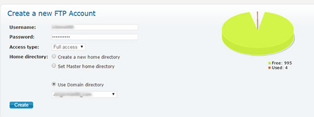 Step 7: Create an FTP account in the server where the WWW A Record is pointed to. Please follow the below settings for access type and home directory.