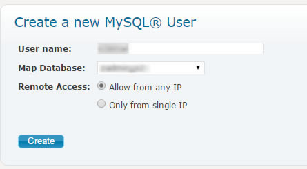 Step 9: Create a database account in the server where the WWW A Record is pointed to. Please follow the below settings for access type and home directory.
