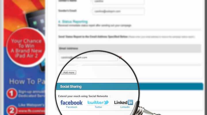 Email88 makes it easy to share your email across social networks with one click in your campaign dashboard.